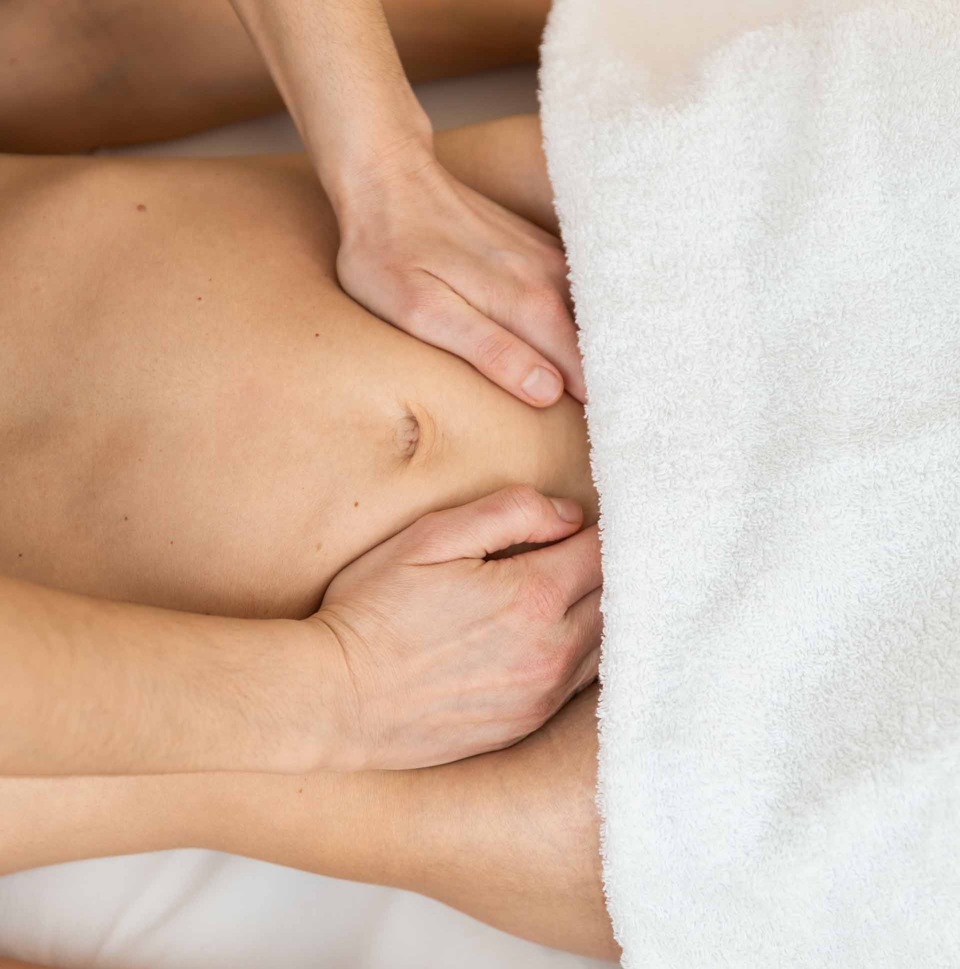 This is a very gentle technique that works on the surface, helping the abdominal tissues to regain tone and stimulating intestinal peristalsis.